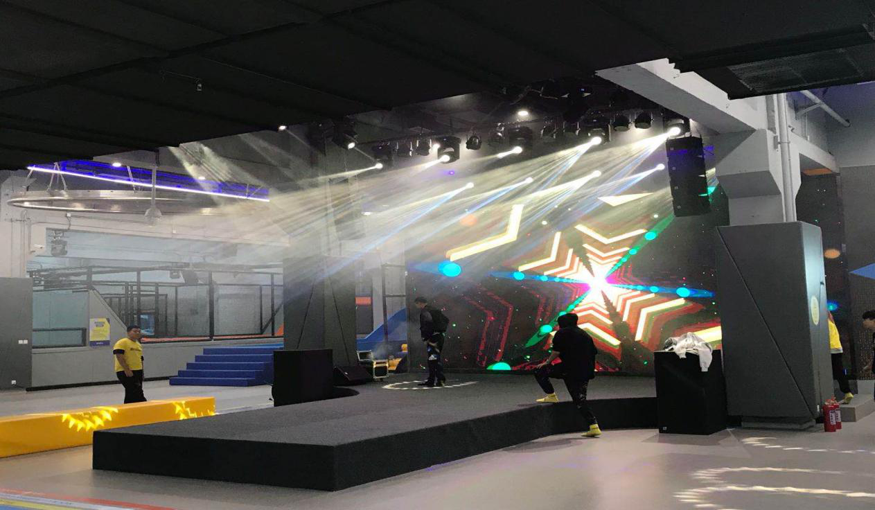 燈光方面,為了營(yíng)造舞臺(tái)區(qū)域的演出效果。使用了Baiangde GS330光束燈20臺(tái),LED染色燈40余臺(tái)及其它10余臺(tái)效果燈具。部分極限運(yùn)動(dòng)區(qū)域,配合場(chǎng)地音樂動(dòng)感需求,也針對(duì)性安裝了十多臺(tái)無極幻影燈。